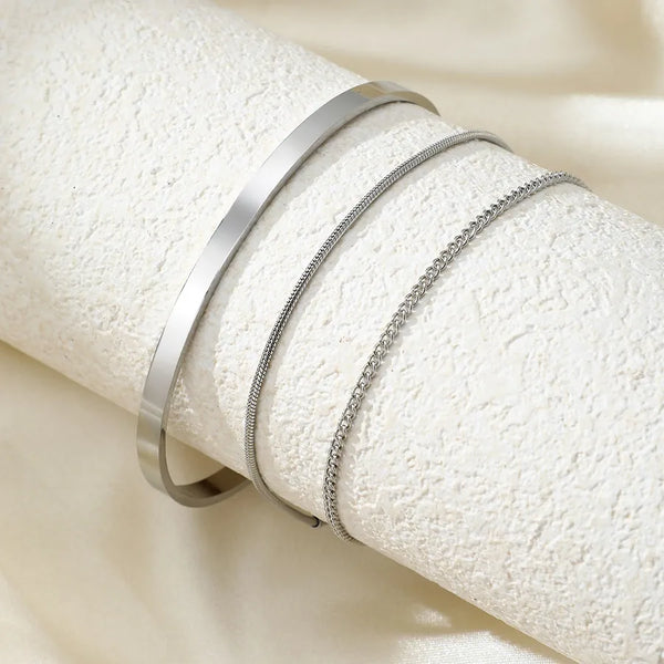Electroplated Steel Color Snake Chain Bracelets for Men, 3 Pieces Set